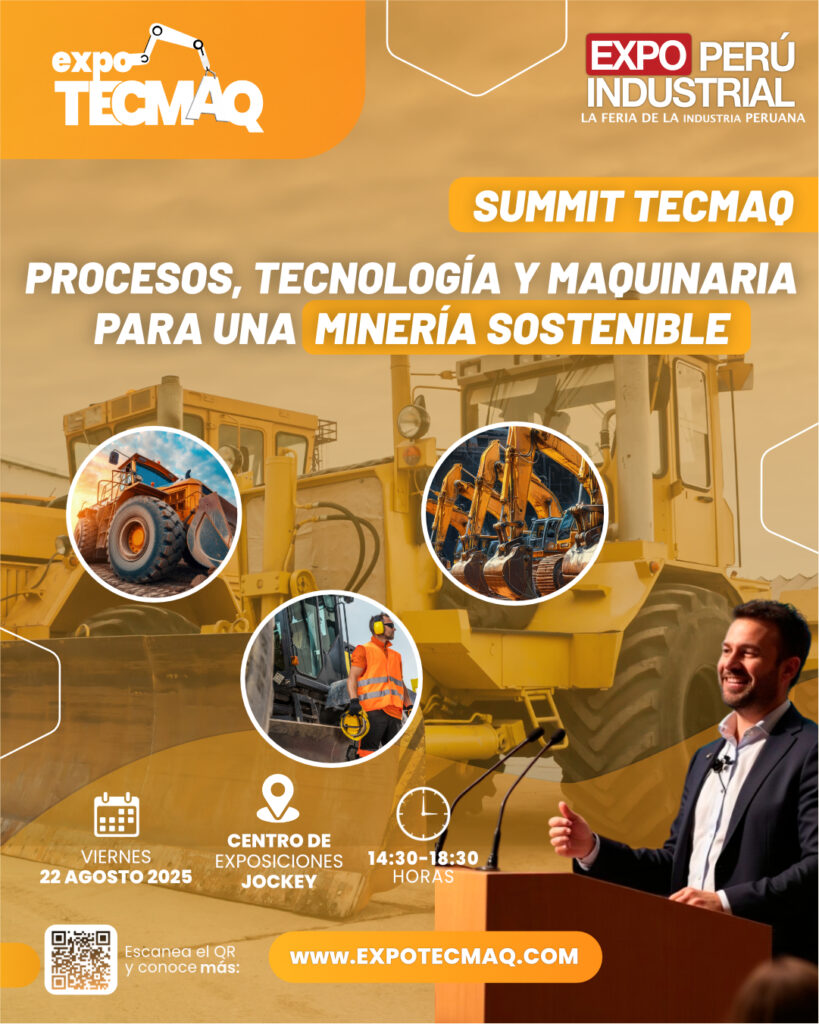 Como parte de sus actividades, el viernes 22 de agosto, de 3:00 p.m. a 6:00 p.m., se llevará a cabo el Summit Expo Tecmaq, un encuentro especializado que reunirá a líderes empresariales, especialistas y representantes institucionales para debatir sobre los procesos, tecnología y maquinaria que impulsen una minería sostenible en Perú.