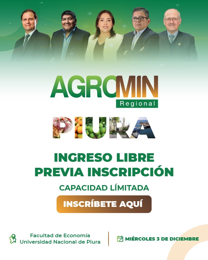 La Asociación Civil Agrominera del Perú y la Universidad Nacional de Piura realizarán AGROMIN Regional Piura, un evento que busca impulsar la integración de los sectores agrícola y minero, promoviendo el desarrollo sostenible y la innovación en la región norte del país. La actividad se llevará a cabo el miércoles 3 de diciembre, en la Facultad de Economía de la Universidad Nacional de Piura, con la participación de destacados especialistas nacionales e internacionales.