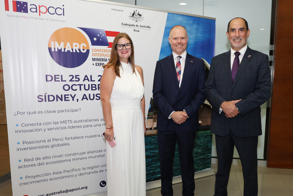 Las declaraciones fueron brindadas durante la ceremonia de bienvenida organizada por la Cámara de Comercio Australia–Perú (APCCI) y el lanzamiento oficial de IMARC 2026 – Conferencia Internacional de Minería y Recursos, evento que se realizará del 25 al 29 de octubre en la ciudad de Sídney.